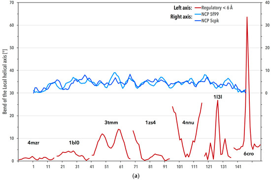 - Olson, W.K.; Zhurkin, V.B. Working the kinks out of nucleosomal DNA. Curr. Opin. Struct. Biol. 2011, 21, 348–357. [Google Scholar] [CrossRef] [PubMed]