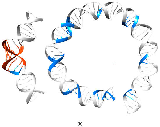 - Blanchet, C.; Pasi, M.; Zakrzewska, K.; Lavery, R. Curves+ web server for analyzing and visualizing the helical, backbone and groove parameters of nucleic acid structures. Nucleic Acids Res. 2011, 39, W68–W73. [Google Scholar] [CrossRef] [PubMed]