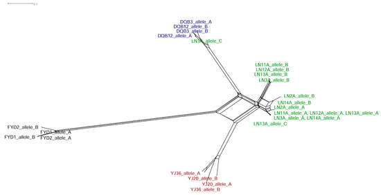 - Bryant, D.; Moulton, V. Neighbor-net: An agglomerative method for the construction of phylogenetic networks. Mol. Biol. Evol. 2004, 21, 255–265. [Google Scholar] [CrossRef] [PubMed]