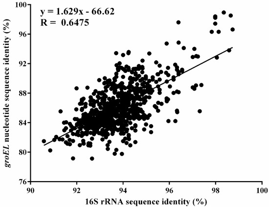 3.1. Comparative Analysis of the groEL and 16S rRNA Gene
