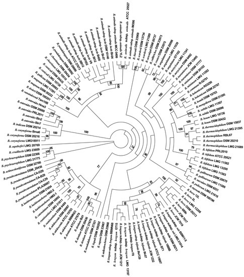 | 39 | B. thermophilum | RBL67 | CP004346 | DQ340557 |