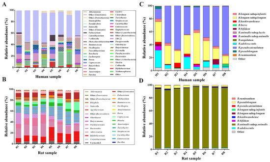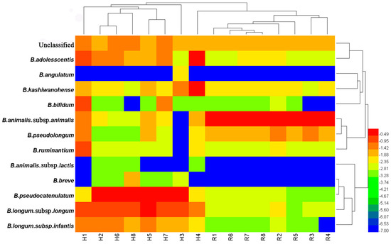 3.5. Comparison of Bifidobacterium Species between Humans and Rats