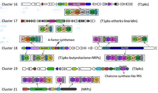 Putative gene clusters for secondary metabolite in S. kanasensis ZX01.