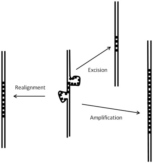 - Onozawa, M.; Zhang, Z.; Kim, Y.J.; Goldberg, L.; Varga, T.; Bergsagel, P.L.; Kuehl, W.M.; Aplan, P.D. Repair of DNA double-strand breaks by templated nucleotide sequence insertions derived from distant regions of the genome. Proc. Natl. Acad. Sci. USA 2014, 111, 7729–7734. [Google Scholar] [CrossRef] [PubMed]