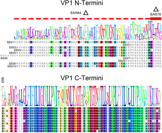 4.4. The SSV1 VP1 N-Terminus Can Be Functionally Replaced with the SSV9 VP1 N-Terminus