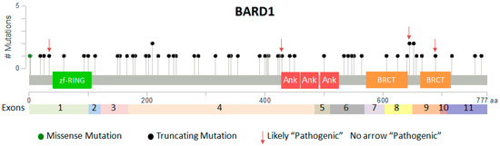 In ClinVar database, beyond deletion, nonsense or frame shift mutations, only one missense mutation of BARD1 is reported as “Pathogenic” even if recent literature demonstrates the association of common and rare point mutations with cancer initiation [29,86]. Thus, further functional investigations of non-coding and coding disease-associated variants are needed in order to verify their role in tumorigenesis and drug response.
