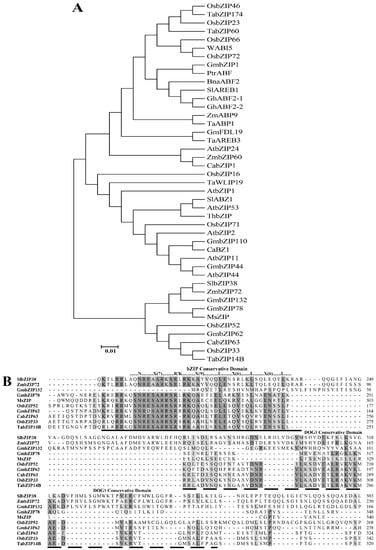 - Nijhawan, A.; Jain, M.; Tyagi, A.K.; Khurana, J.P. Genomic survey and gene expression analysis of the basic leucine zipper transcription factor family in rice. Plant Physiol. 2008, 146, 333–350. [Google Scholar] [CrossRef] [PubMed]