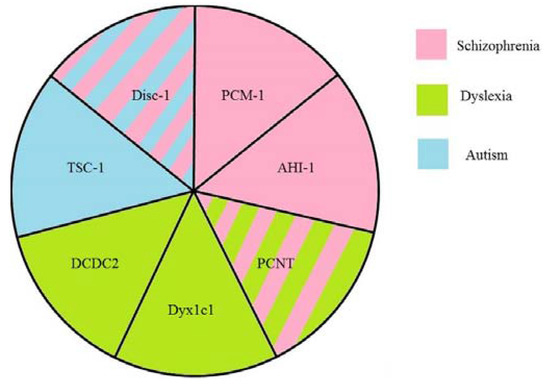 - Schumacher, J.; Anthoni, H.; Dahdouh, F.; Konig, I.R.; Hillmer, A.M.; Kluck, N.; Manthey, M.; Plume, E.; Warnke, A.; Remschmidt, H.; et al. Strong genetic evidence of DCDC2 as a susceptibility gene for dyslexia. Am. J. Hum. Genet. 2006, 78, 52–62. [Google Scholar] [CrossRef] [PubMed]