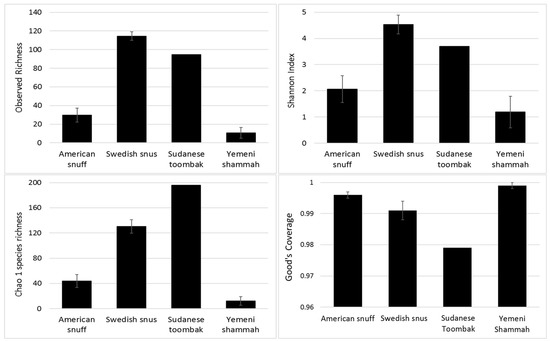 The study was funded by the Deanship of Scientific Research at Jazan University, Saudi Arabia (grant #1434-M5-27). We would like to thank Fuad Alnajjar, Niyaz Al-hemiari, and Asaad Khalid for their help with obtaining the American moist snuff, Swedish snus, and Sudanese toombak samples, respectively. We are also thankful to Mona Abulfutooh for providing valuable information about the ST industry in the world. We thank Emeritus Newell Johnson for facilitating arrangements with the Australian Centre for Ecogenomics and for critical reading of the manuscript.
