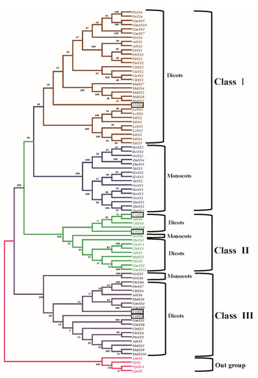 In all plant species examined to date, the SS isoenzymes are encoded by a small, multi-gene family [8,29,40,50]. Comprehensive analysis of this multi-gene family, including its exon/intron structures, phylogeny, and syntenic analysis, makes it possible for researchers to predict the potential functions and evolutionary relationships among uncharacterized members of this gene family.
