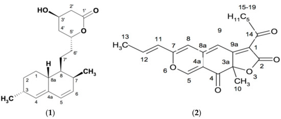 The isolated compounds were identified as monacolin L and rubropunctatin, which were reported in our latest publication [16]. The chemical structural of two compounds are presented in Figure 1.