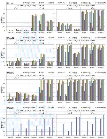 To assess the performance of HiSeeker, we perform extensive simulation experiments using six different disease models and compare its power with four representative approaches: AntEpiSeeker [23], EDCF [29], DCHE [30] and TAMW [28]. We adopt the same measure of power proposed by Wan et al. [13] as follows: