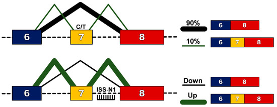 - Kashima, T.; Manley, J.L. A negative element in SMN2 exon 7 inhibits splicing in spinal muscular atrophy. Nat. Genet. 2003, 34, 460–463. [Google Scholar] [CrossRef] [PubMed]