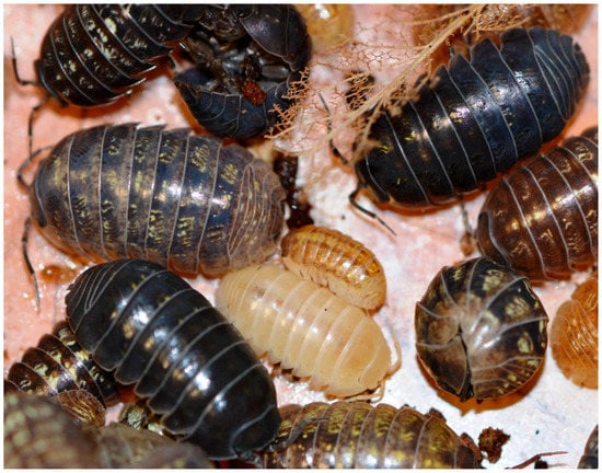 - Becking, T.; Giraud, I.; Raimond, M.; Moumen, B.; Chandler, C.; Cordaux, R.; Gilbert, C. Diversity and evolution of sex determination systems in terrestrial isopods. Sci. Rep. 2017, 7, 1084. [Google Scholar] [CrossRef] [PubMed]