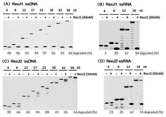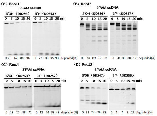 - Wakamatsu, T.; Kim, K.; Uemura, Y.; Nakagawa, N.; Kuramitsu, S.; Masui, R. Role of RecJ-like protein with 5′-3′ exonuclease activity in oligo(deoxy)nucleotide degradation. J. Biol. Chem. 2011, 286, 2807–2816. [Google Scholar] [CrossRef] [PubMed]