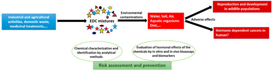 Risk assessment and chemical exposure prevention. Chemical mixtures such as endocrine-disrupting chemicals (EDCs), released from different sources, can be found in the environment and food. They should be monitored through analytical and screening approaches. New detection methods are also needed to quantify risks to animal and human health prior to exposure to the chemical mixtures.
