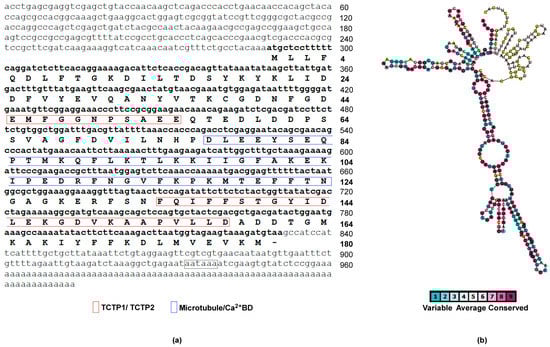 The cDNA contains an ORF of 543 bp corresponding to 180 amino acid residues. The predicted protein has an estimated molecular mass of 20,553.68 Da, with a theoretical isoelectric point (pI) of 4.54 and possesses the two TCTP signatures (TCTP1 located between residues 44–54; TCTP2 located between amino acid residues 131–158). The overlapping microtubule-binding region and the Ca2+ -binding motif were also identified.