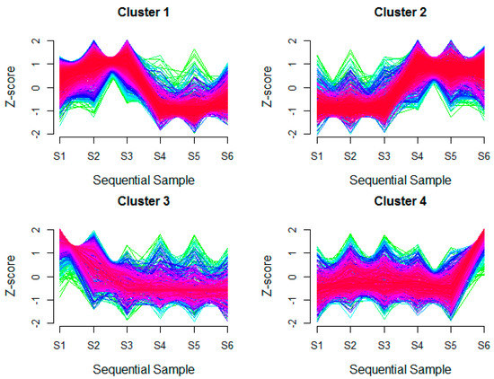 19. Kumar, L.; Futschik, M.E. Mfuzz: A software package for soft clustering of microarray data. Bioinformation 2007, 2, 5–7. [Google Scholar] [CrossRef] [PubMed]