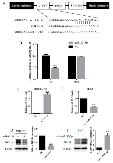 3.3. MiR-93-5p is Up-Regulated, PPARGC1A Is Down-Regulated in Hepatoma Cells