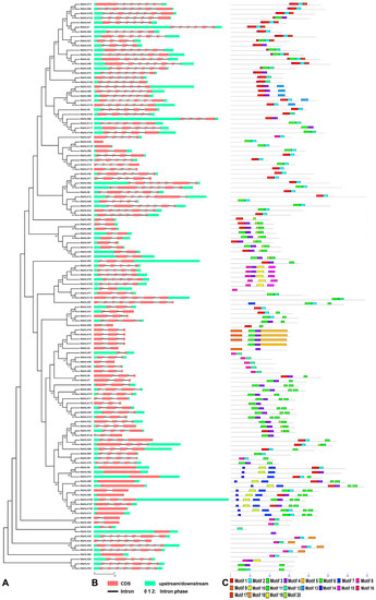 - Hu, B.; Jin, J.; Guo, A.Y.; Zhang, H.; Luo, J.; Gao, G. GSDS 2.0: An upgraded gene feature visualization server. Bioinformatics 2015, 31, 1296–1297. [Google Scholar] [CrossRef] [PubMed]
