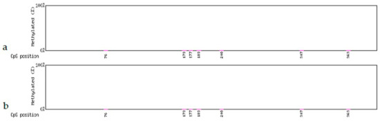 Scatter plot of methylation in the partial FLP gene sequence after heat-shock treatment. (a) Non-deletion transgenic line 98-3-2. (b) Partial-deletion transgenic line 22-2-2.