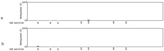 Methylation levels in the partial FLP gene sequence after heat-shock treatment. (a) Non-deletion transgenic line 98-3-2. (b) Partial-deletion transgenic line 22-2-2.