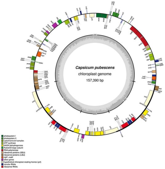 25. Raveendar, S.; Na, Y.-W.; Lee, J.-R.; Shim, D.; Ma, K.-H.; Lee, S.-Y.; Chung, J.-W. The complete chloroplast genome of Capsicum annuum var. glabriusculum using illumina sequencing. Molecules 2015, 20, 13080–13088. [Google Scholar] [CrossRef] [PubMed]