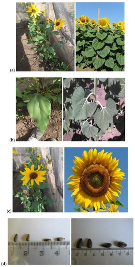 In sunflower, there is significant variability in all of the leaf characteristics, such as petiole angle, petiole length, total number of leaves per plant, and total leaf area per plant [,] (Figure 1b). There is considerable difference in the leaf number per plant in connection to the vegetation period, as it is described that early genotypes have a lower leaf number per plant, while genotypes with longer vegetation have a higher number of leaves per plant [].
