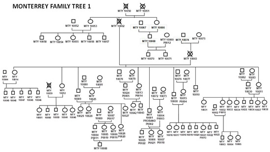 Families are ascertained and recruited following established guidelines and strategies for processes of recruitment in prospective family-based studies [15]. The ideal proband for recruitment is healthy, aged 25–45 years, and both parents are also healthy, alive and willing to participate. Once a proband is enrolled, an invitation to participate in the study will be extended to all relatives of first, second or third degree (e.g., parents, children, grandparent/grandchild, avuncular, cousins, etc.) who are at least 18 years of age, their spouses, and the proband’s spouse and the spouse’s relatives aged 18 or above. Our goal is to recruit 400 healthy volunteers in ~10 extended families (40 subjects from each of the participating centers), ascertained without regard to disease status [16]. Figure 2 represents the pedigree of a typical family recruited in this study from Monterrey, Nuevo Leon, Mexico. All participants provide written, informed consent, and all procedures are approved by the Ethical Committees (Institutional Review Boards) of the respective centers. Export of GEMM samples for multi-OMICs analysis to the USA. has been permitted by the Mexican Federal government in accordance with Mexican genetic sovereignty law [17] (COFEPRIS Permit No. COF187278 (DEAPE 133300CT190038/2013) issued on 19 March 2013) [18]. This family-based study is currently approved by the Institutional Review Board at the University of Texas Health Sciences Center at San Antonio (IRB Number HSC20170448H) and is conducted according to the principles expressed in the declaration of Helsinki.