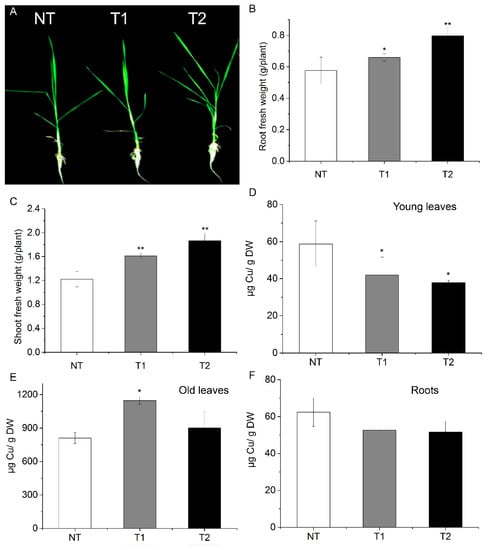 - Adrees, M.; Ali, S.; Rizwan, M.; Ibrahim, M.; Abbas, F.; Farid, M.; Zia-Ur-Rehman, M.; Irshad, M.K.; Bharwana, S.A. The effect of excess copper on growth and physiology of important food crops: A review. Environ. Sci. Pollut. Res. Int. 2015, 22, 8148–8162. [Google Scholar] [CrossRef]