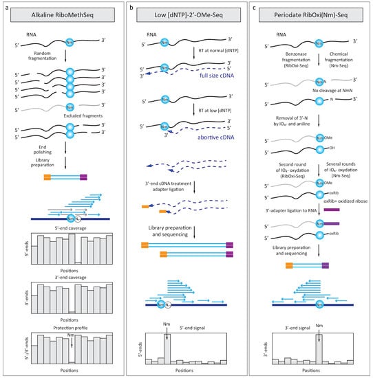 In order to improve and accelerate detection and quantification of RNA 2′-O-methylation, three deep sequencing-based analytical approaches were proposed; all three exploit different particular properties of 2′-O-methylations (Figure 4).