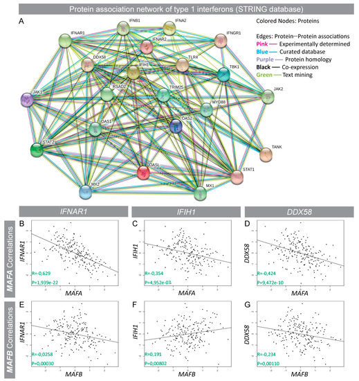 The following are available online at http://www.mdpi.com/2073-4425/9/12/644/s1, Figure S1: MAFA and MAFBA are negatively correlated with IFI genes, Table S1: Quantitative PCR primer sequences, Tables S2 and S3: Gene list from PathCards pathway unification database.