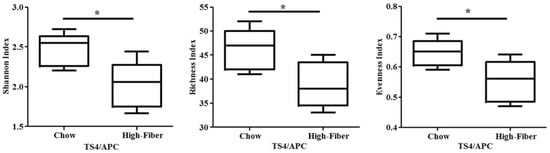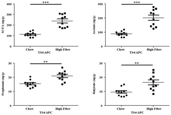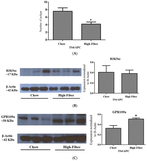 3.3. High Fiber Treatment Increased the Short Chain Fatty Acid Production in Polyposis Mice