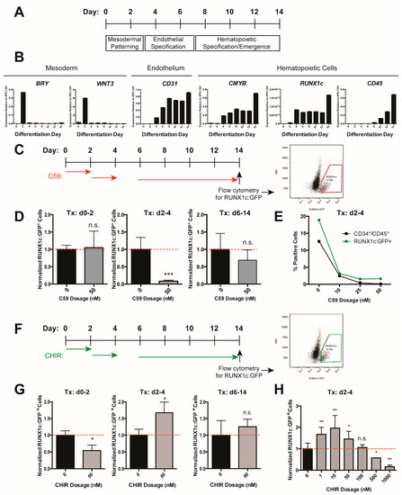 - Wang, Y.; Nakayama, N. WNT and BMP signaling are both required for hematopoietic cell development from human ES cells. Stem Cell Res. 2009, 3, 113–125. [Google Scholar] [CrossRef] [PubMed]