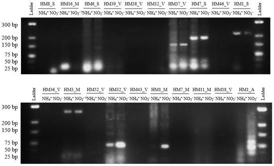 The majority of sRNAs (HM6_S, HM37_V, HM7_S, HM1_S, HM3_M, and HM32_V) are expressed in both conditions, in the presence of nitrate and ammonium. However, three sRNAs show a different expression pattern according to the nitrogen source; HM8_S and HM1_M sRNAs are expressed exclusively in the presence of nitrate and HM16_M sRNA is expressed in the presence of ammonium.