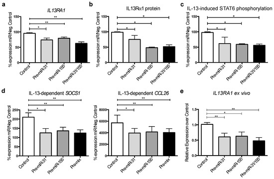 3.5. MicroRNA-31 and miR-155 Reduce IL-13 Signalling by Downregulating IL13Rα1 Expression in Gut Epithelial Cells