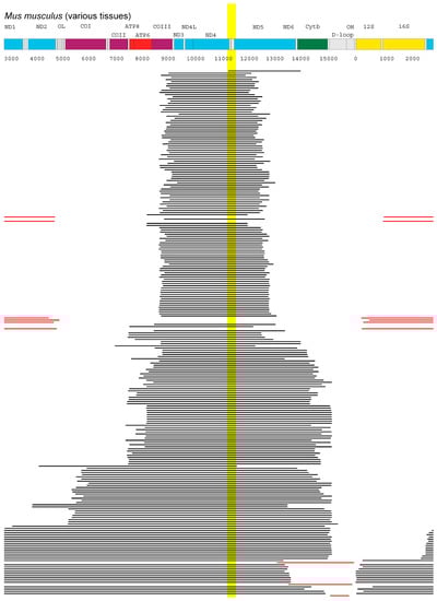 - Damas, J.; Carneiro, J.; Amorim, A.; Pereira, F. Mitobreak: The mitochondrial DNA breakpoints database. Nucleic Acids Res. 2014, 42, D1261–D1268. [Google Scholar] [CrossRef] [PubMed]