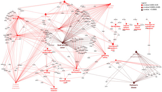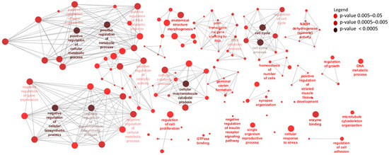 Differentially expressed genes were enriched for gene ontology (GO) and Kyoto Enciclopedia of Genes and Genomes (KEGG) pathways using ClueGO [51]. In this enrichment analysis, a hypergeometric test was used. For GO enrichment, the Bovine GO database and Benjamini and Hochberg (BH) [50] correction for multiple testing controlled p-values and GO with corrected p < 0.05 was considered significantly enriched. Meanwhile, since there are no KEGG databases for bovine species in ClueGO, the human KEGG database was used as background and pathways with uncorrected p < 0.05 were considered significantly enriched.