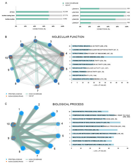 3.5. An Overall Higher Expression of Long Non-Coding RNAs Compared to Protein Coding Genes Is Observed in Lluteño Maize under 96 h of Exposure to Stressed Conditions