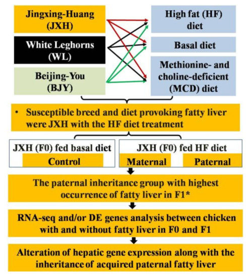 3.2. Characteristics of Inherited Phenotype of Acquired Fatty LiverInduced by High Fat Diet in Jingxing-Huang Chickens