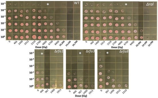 3.3.1. Δrfa3, Δrfa8, and Δrfa1 Confer Ionizing Radiation Sensitivity