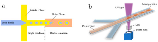 - Wang, W.; Zhang, M.-J.; Chu, L.-Y. Functional polymeric microparticles engineered from controllable microfluidic emulsions. Acc. Chem. Res. 2014, 47, 373–384. [Google Scholar] [CrossRef] [PubMed]