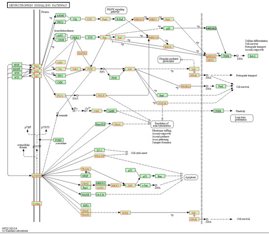Neurotrophin signaling pathway and genes involved in the significant gene links (marked in red box).