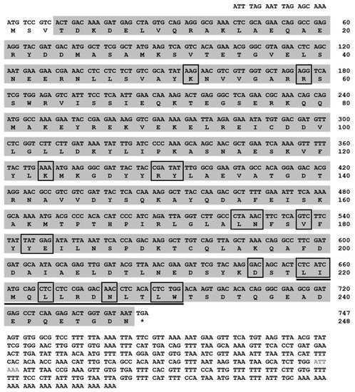 - Larkin, M.A.; Blackshields, G.; Brown, N.P.; Chenna, R.; McGettigan, P.A.; McWilliam, H.; Valentin, F.; Wallace, I.M.; Wilm, A.; Lopez, R.; et al. Clustal W and clustal X version 2.0. Bioinformatics 2007, 23, 2947–2948. [Google Scholar] [CrossRef] [PubMed]