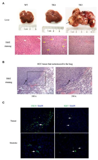 2.3. The Incidence of HCC and Histopathological or Immunohistochemistry Analysis in HSV-tk Mice