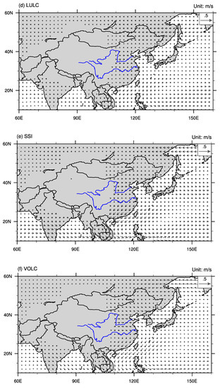For the mechanisms behind megadroughts over eastern China, circulation anomalies, e.g., Western Pacific subtropical high (WPSH) and Eastern Asia summer monsoon (EASM), are the direct causes of megadroughts, while external forcing, e.g., solar radiation and volcanic eruptions, may influence the regional climate by changing large-scale circulation patterns [33,34,35,36]. For example, Shen et al. [37] found that several exceptional droughts over eastern China during the last 500 years may have been triggered by large volcanic eruptions and amplified by both volcanic eruptions and El Niño events. Through model simulations, Peng et al. [38] indicated that solar activity may be the primary driver in the occurrence of several persistent droughts over eastern China, and the influences occurred through EASM weakening.