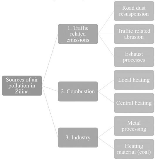 The genesis of particulate matter PM10 from identified sources in the city of Žilina is shown in the following figure (Figure 10). In the summer season, road traffic is the dominant source of particulate matter air pollution. In the winter, combustion is added to the road traffic source, which significantly contributes to deteriorating urban living conditions.