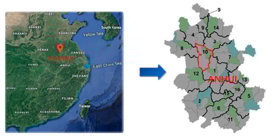 Huainan (116°21′21″–117°11′59″ E, 32°32′45″–33°0′24″ N) is a coal-producing city in Anhui province. Huainan is located in eastern China, near Jiangsu, Shanghai, and Zhejiang (Figure 1), and is a rapidly developing economic zone.