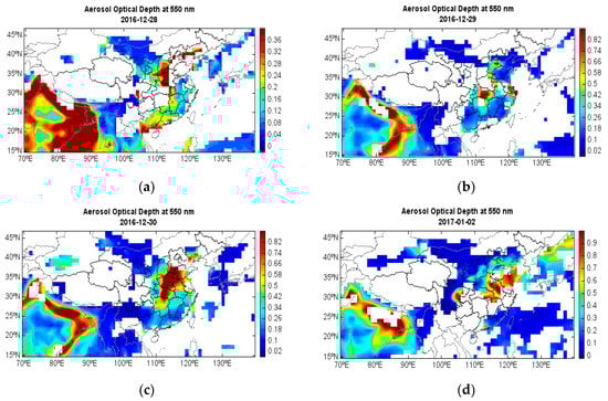 - Gui, K.; Che, H.; Chen, Q.; An, L.; Zeng, Z.; Guo, Z.; Zheng, Y.; Wang, H.; Wang, Y.; Yu, J.; et al. Aerosol Optical Properties Based on Ground and Satellite Retrievals during a Serious Haze Episode in December 2015 over Beijing. Atmosphere 2016, 7, 70. [Google Scholar] [CrossRef]