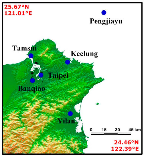 Map of Taiwan’s northern region and meteorological stations.